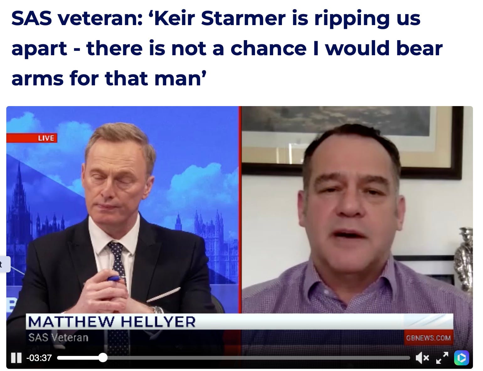 Keir Starmer is ripping us apart SAS veteran Matthew Hellyer has told GB News he would never go to battle for Britain while Sir Keir Starmer is in charge.Feb 18, 2025ShareVisit: https://www.gbnews.com/news/sas-veteran-keir-starmer-ukraine-war-fight
