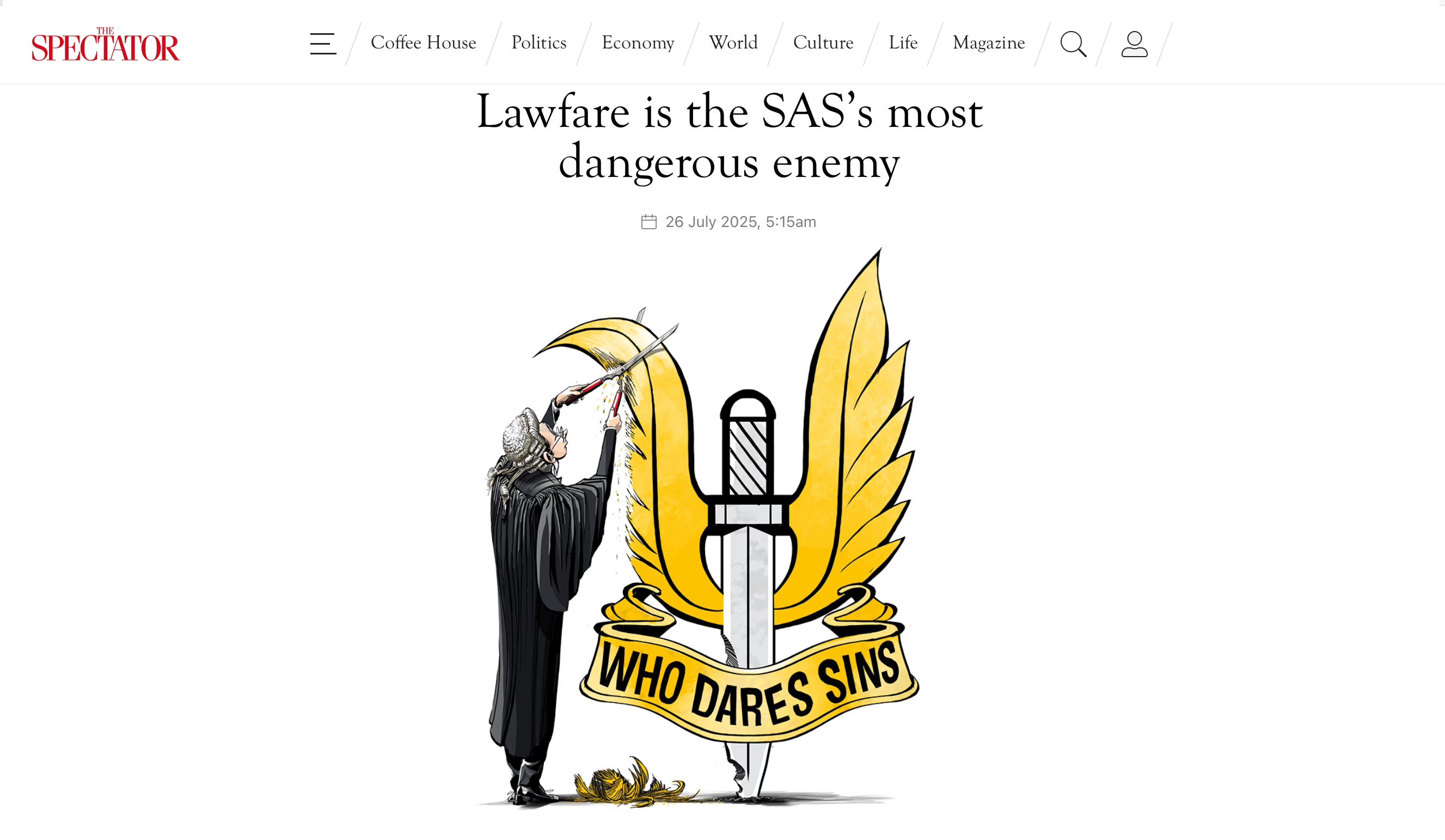 Gavin Mortimer, explores in The Spectator (26/7/25) the fast-growing threat facing Britain’s Special Air Service (SAS) — not from combatants or terrorists, but from the legal system itself.