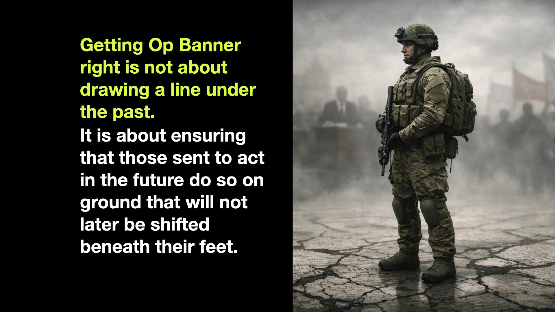 Getting Op Banner right is not about drawing a line under the past. It is about ensuring that those sent to act in the future do so on ground that will not later be shifted beneath their feet.