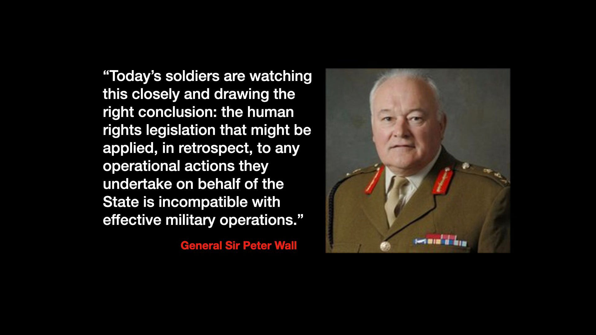 Today’s soldiers are watching this closely and drawing the right conclusion: the human rights legislation that might be applied, in retrospect, to any operational actions they undertake on behalf of the State is incompatible with effective military operations. It makes one wonder why anyone would deploy on operations at all, knowing that if they survive the threat of shot and shell, they will be vulnerable for the rest of their lives.