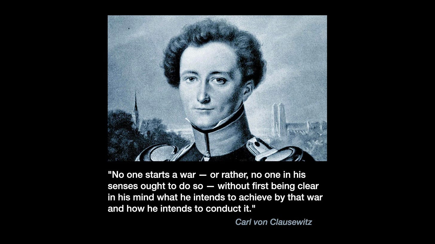 As Carl von Clausewitz, the Prussian military theorist, put it: "No one starts a war — or rather, no one in his senses ought to do so — without first being clear in his mind what he intends to achieve by that war and how he intends to conduct it."